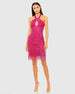 Pink Cross Front Keyhole Top Beaded Fringe Mini Dress