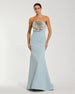 Blue Strapless Crepe Trumpet Gown with 3D Rhinestone Flower