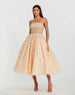 This Embellished Lace Strapless A-Line Midi Dress combines feminine elegance and charm with a delicate lace overlay, intricate embellishments, and a flattering A-line silhouette, making it perfect for both formal and semi-formal occasions.