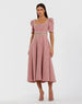 Pink Puff Sleeve Boucle Midi Dress With Beaded Belt