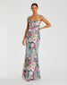 Green Floral Embroidered Sleeveless Bustier Gown