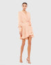 Chic long-sleeved wrap dress with a shawl lapel and flirty pleated hi-low skirt.