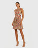 A playful yet elegant mini dress with baby ruffles and a vibrant floral print, perfect for daytime events, brunches, or any occasion to stand out in effortless style.