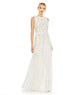Ivory Embroidered High Neck Sleeveless Ruffled Gown - FINAL SALE