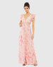 Pink Floral Printed Ruffle Shoulder Lace Up Gown