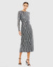 Elevate your evening ensemble with our opulent georgette cocktail dress, meticulously hand-embellished with alternating rows of paillettes, sequins, and rhinestones. Fully lined through the bodice and skirt, its semi-sheer unlined sleeves add a touch of allure, making it the quintessential choice for fall and holiday soirées.