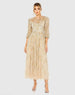 Our Beaded High Neck Midi Dress features an illusion high neckline and elegant elbow-length blouson sleeves. The beaded waist detail adds a touch of glamour, making it perfect for any event where you want to stand out.