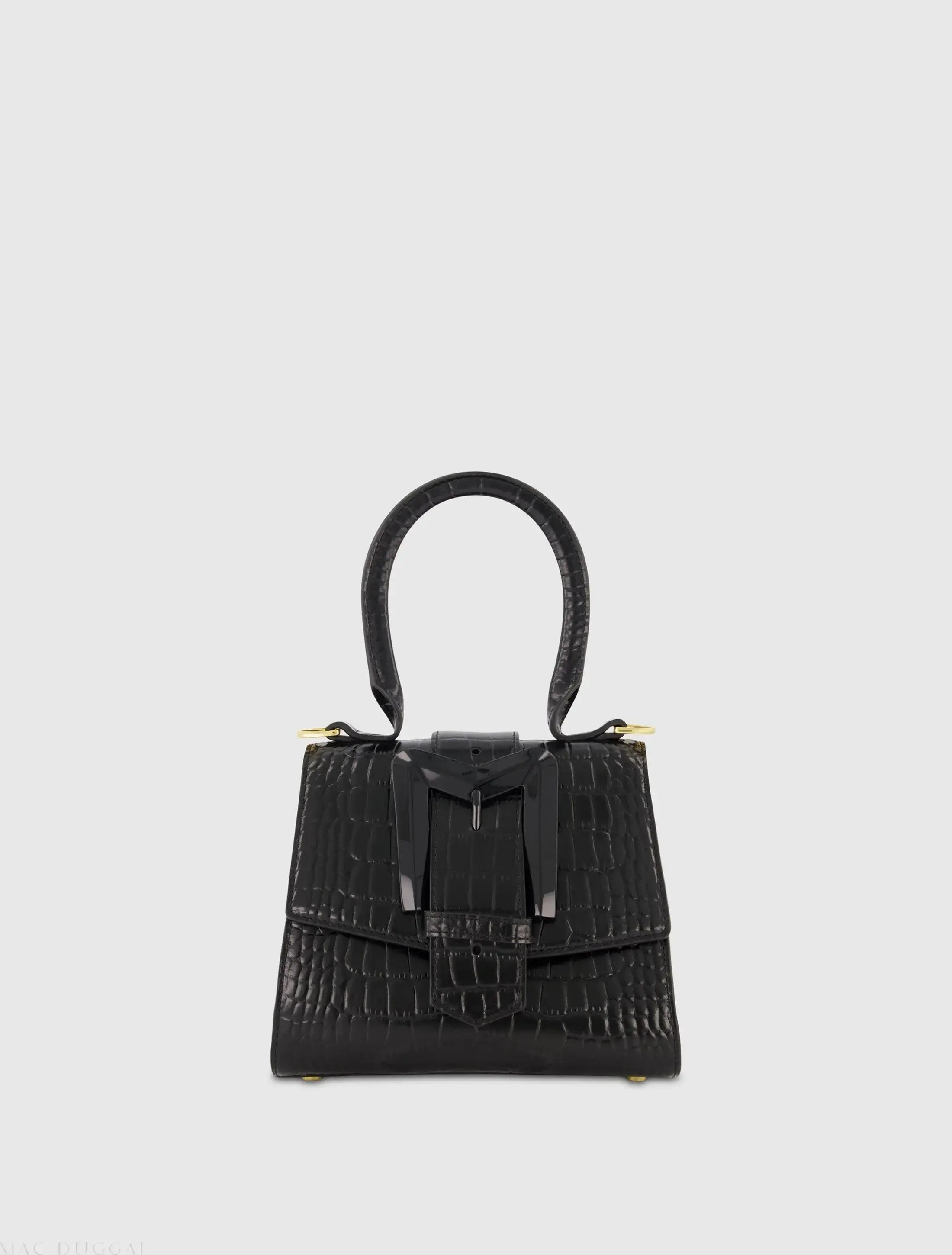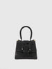 Black Buckled Mini Croco Leather Handbag with Detachable Strap