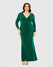 Elevate your evening look with our Long Crystal Detail Sleeve V-Neck Gown. Made from jersey fabric, this gown features a flattering V-neck and long sleeves adorned with shimmering crystal embellishments. The ruching across the bodice adds a sophisticated touch, making it the perfect choice for your next special occasion.