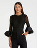 Add a touch of glamour to your wardrobe with our Mesh Long Sleeve Bodysuit featuring Satin Puff Sleeves. The bodysuit is unlined and sheer through sleeves and body. Perfect for pairing with high-waisted jeans or a sleek skirt, this versatile piece transitions seamlessly from day to evening, ensuring effortless elegance with every outfit.