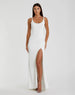 Sleeveless Crystal Scoop Neckline Column Gown with High Slit